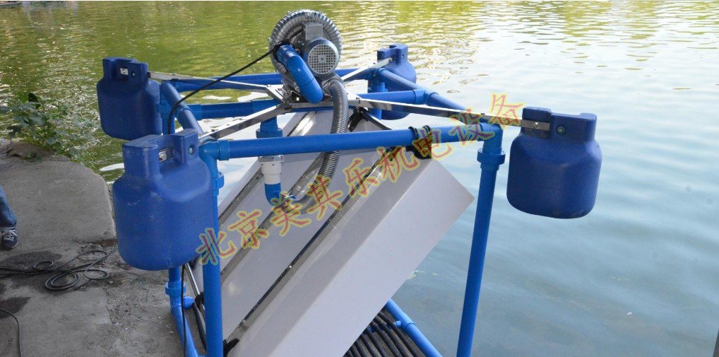 有固定式的架子,放置漩渦風機,四周有浮力箱,使它可以像水車式那樣漂浮在水面上,但增氧效果要比水車式增氧機好很多。根據水池的深淺選擇不同型號的增氧樣。