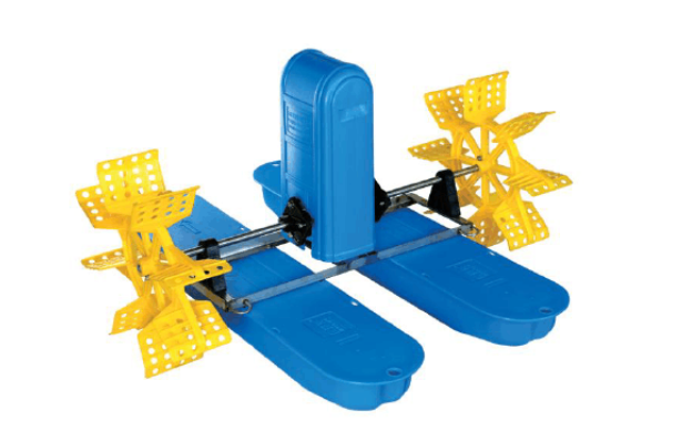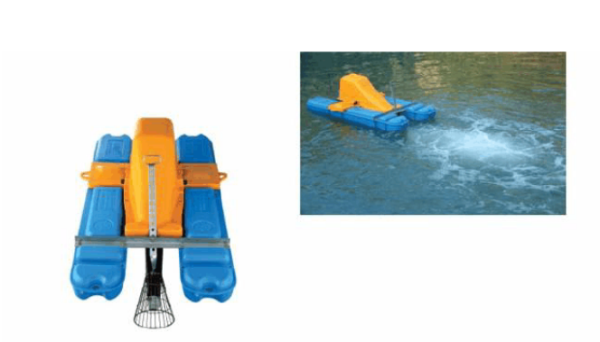 工作時,槳葉高速擊水,把空氣攪入水中,達到增氧目的,具有良好的增氧及促進水體流動的效果。